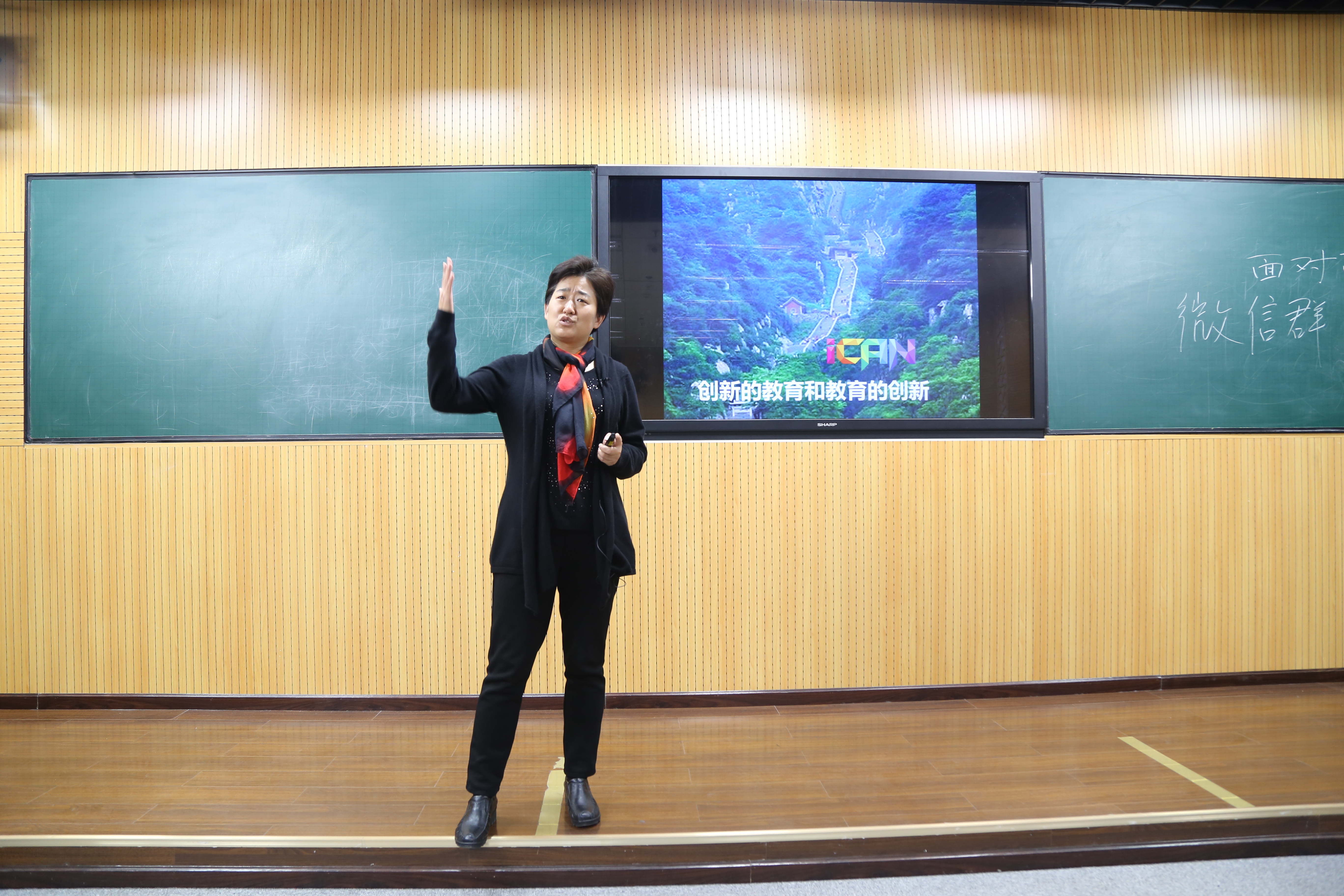 最后,张教授送给在场的教师及研究生几句话:人生最关键的是做人和做事的态度!鼓励每个人不断努力、通过自己的创新创业实践迈向世界的大舞台:Yes,iCAN!只有创新让华夏文明站到世界的最前列,国富民强是每一个人不可推卸的责任!