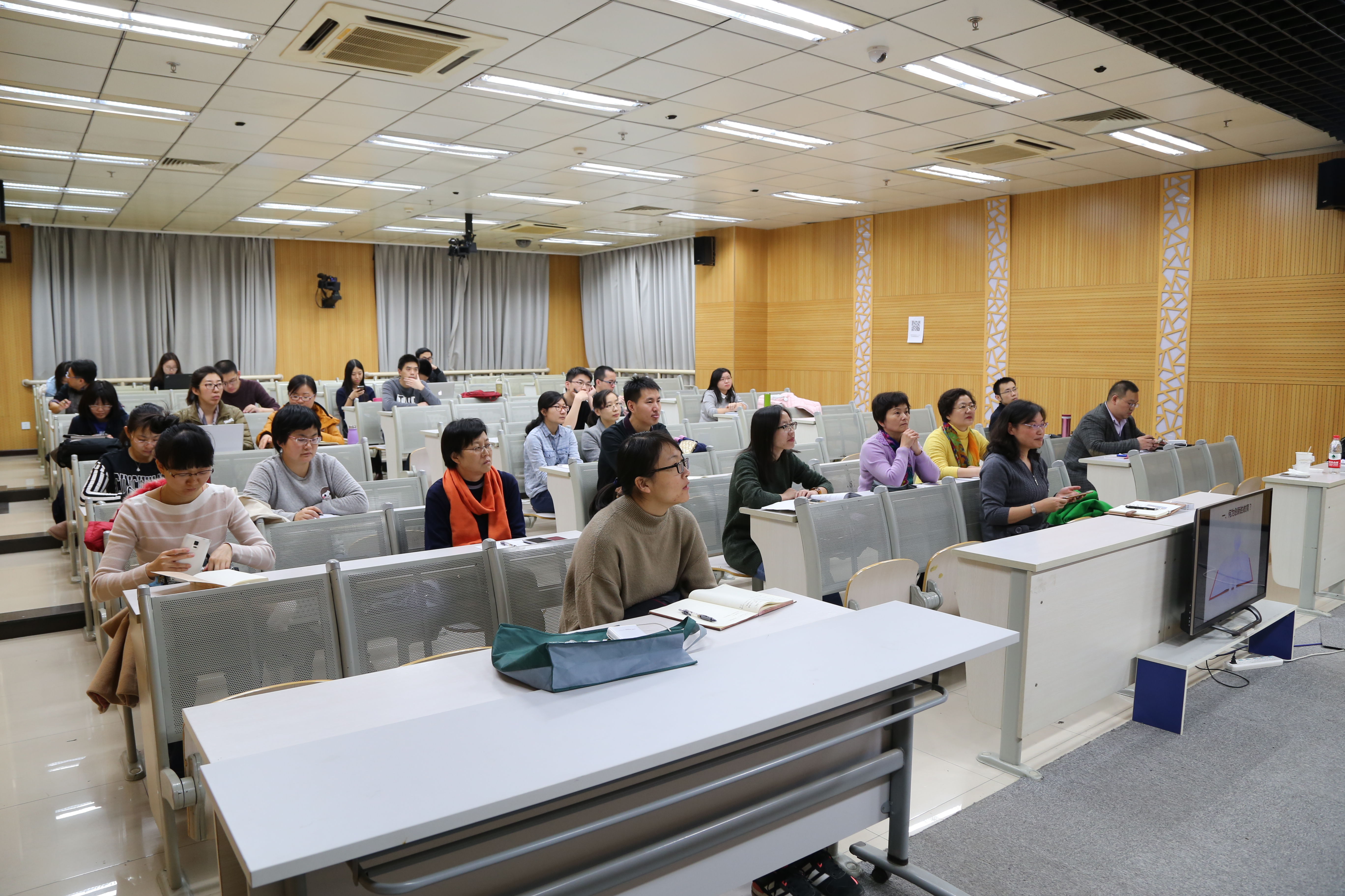 张教授生动的讲授不时引起教师们会意的笑声,她以自身经历的讲述又让大家和她一起热泪盈眶。讲座在大家热烈的掌声中结束,最后张教授与现场教师就教学与科研如何分配、工作生活如何协调、如何培养个人的创新能力等问题进行了深入交流。