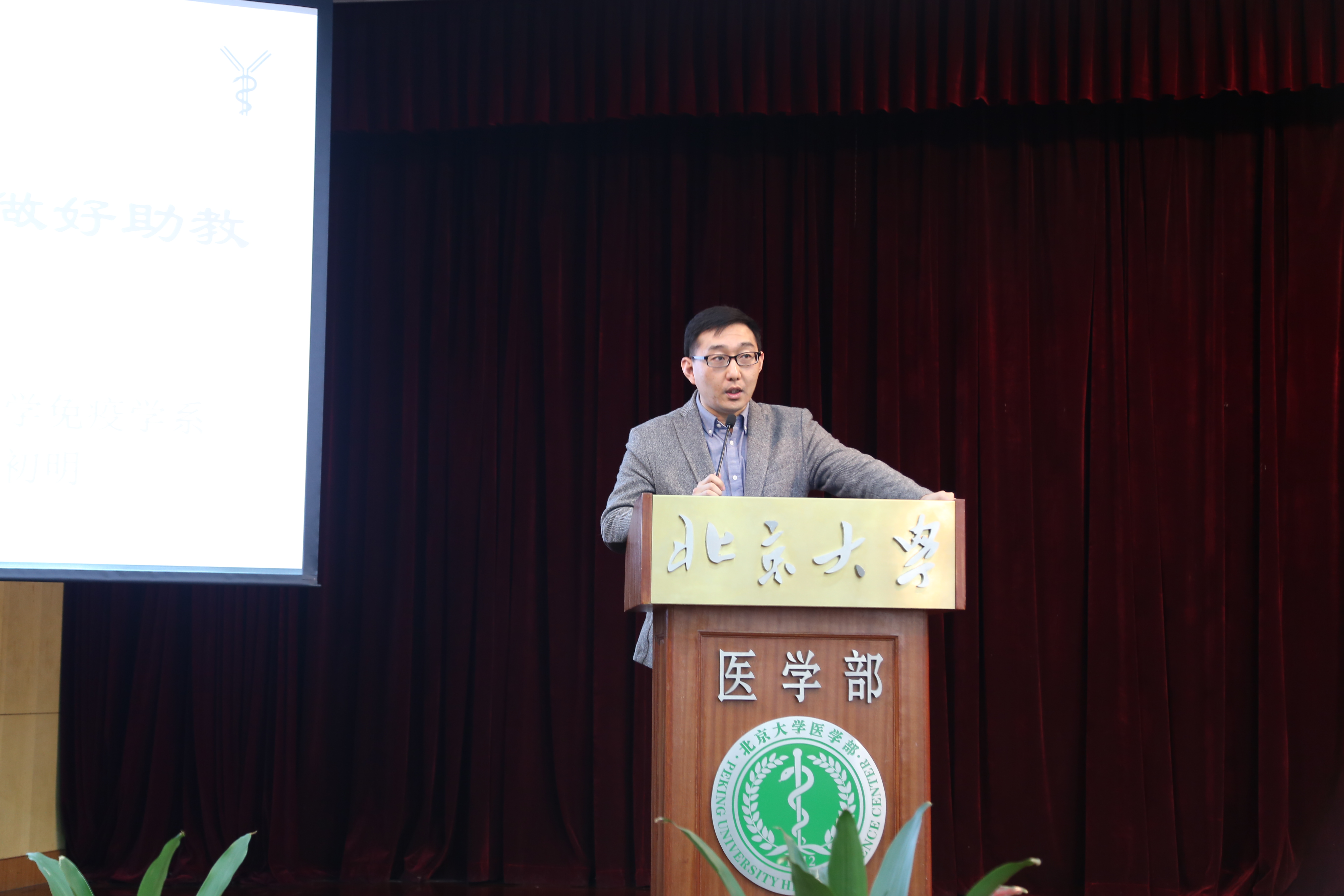 接着,基础医学院免疫学系初明老师与大家分享如何做好助教。初明老师分别以孔子之三千弟子将其语录思想汇编形成《论语》、唐僧师徒的团队角色、“最后的晚餐”中的犹大做比喻,指出助教应当是教师思想理念的传播者,在工作中应承担执行者、沟通者、管理者的角色,但需要严格遵守教师的基本原则与道德规范。此外,助教最重要的职责是教师与学生间沟通的桥梁,推动课堂教学的顺利进行。
