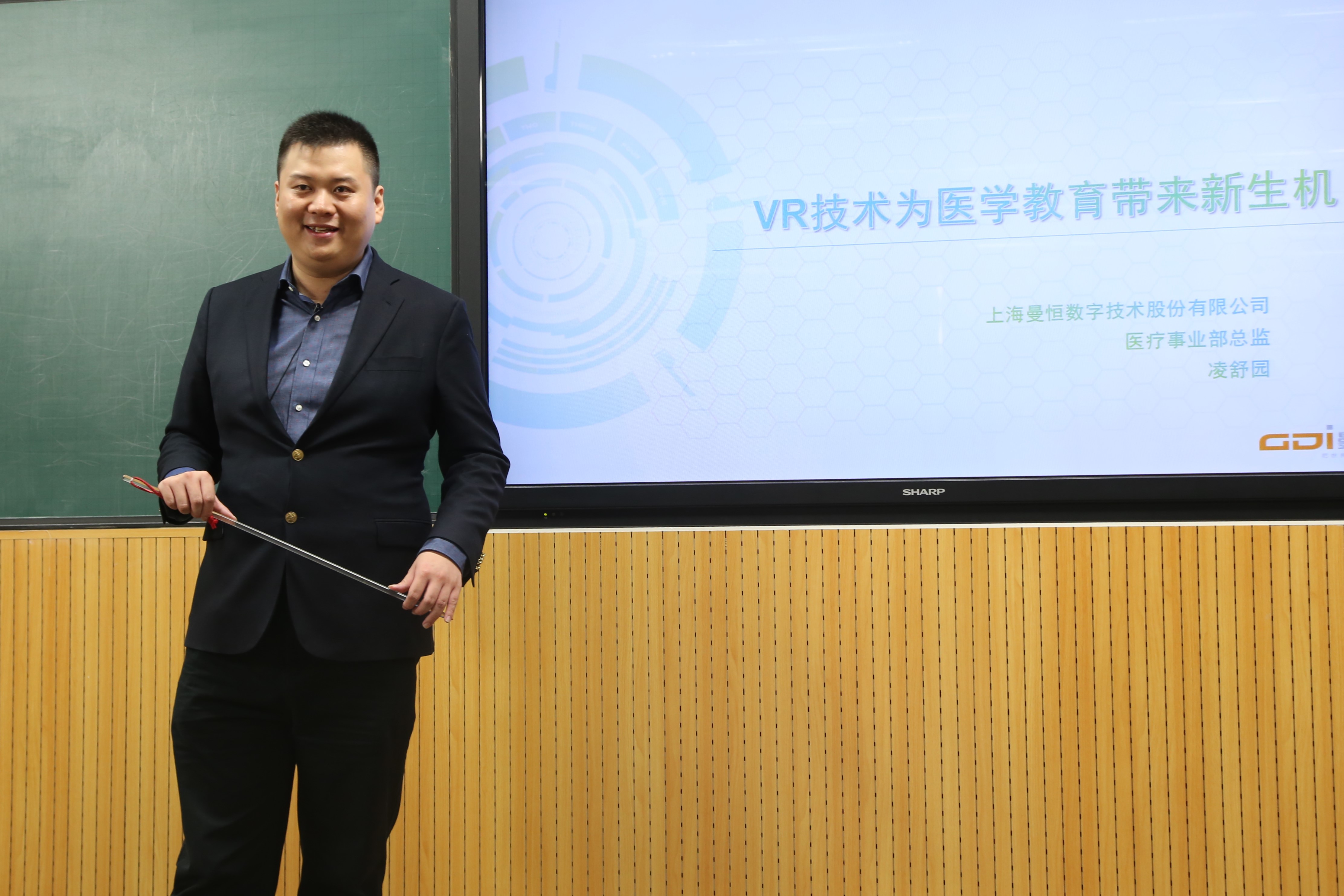 2017年6月28日下午在逸夫楼507,上海曼恒数字技术股份有限公司医疗事业部总监凌舒园受邀进行“VR技术为医学教育带来新生机”讲座,来自各学院(部)、临床医院、教学医院的40余名教师与研究生助教参加了本次活动。