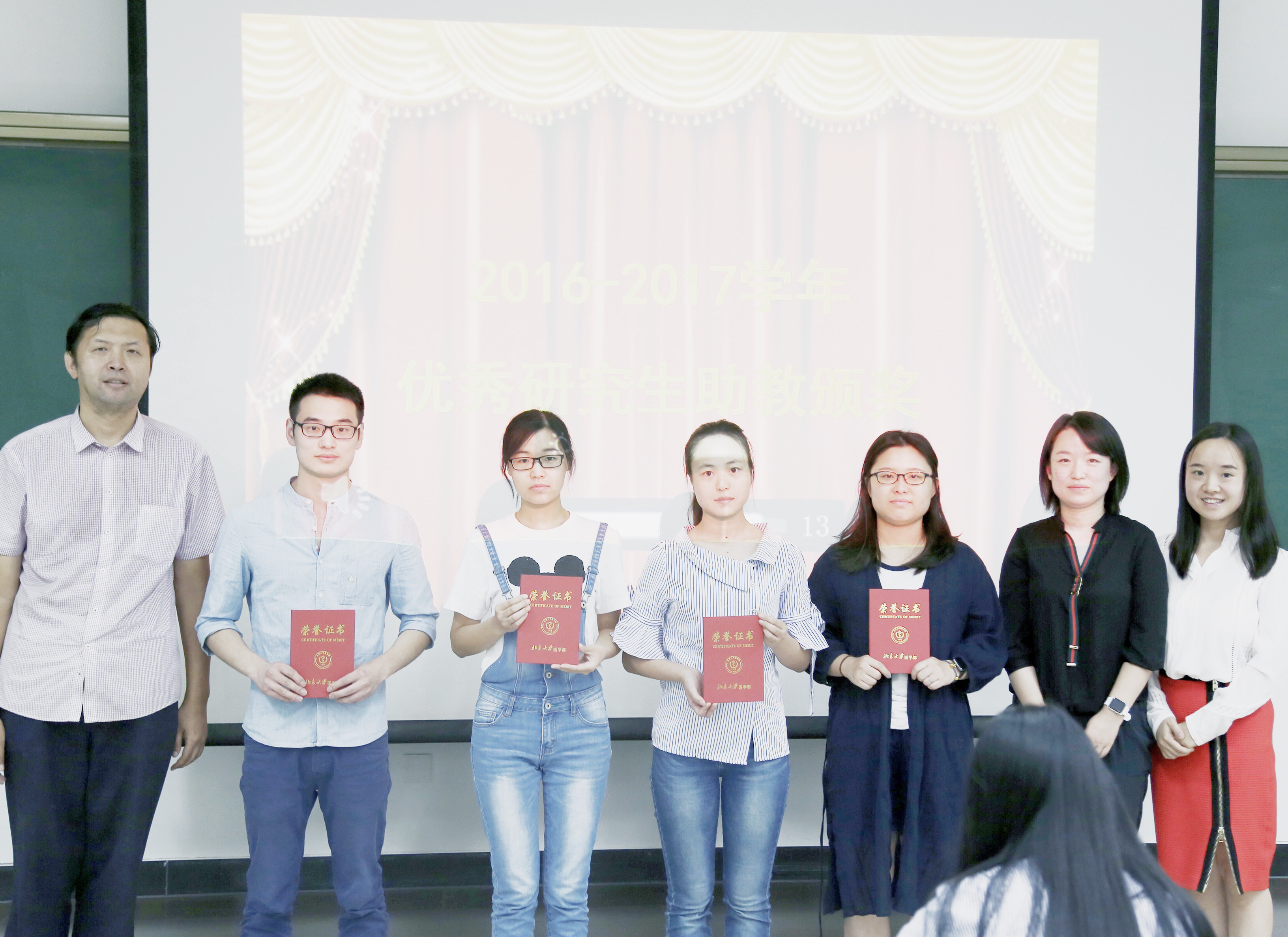 接着,研究生工作部副部长刘芳宣读了《关于表彰北京大学医学部2016-2017学年优秀研究生助教的决定》,共有31名研究生获得“优秀研究生助教”称号,并为4名优秀助教代表颁发了证书。来自基础医学院的15级研究生王誉雅作为优秀助教代表,与同学们分享了她的助教工作心得与经验。她认为,助教的基本职责包括考勤、备课、组织课堂、批改作业、答疑,这些基本工作的重要性不可小觑;而要成为一个优秀的助教,更要懂得保护学生的自尊心和好奇心,点燃学生对科研的激情和热忱,言传身教,为学生未来的成长打下坚实基础。