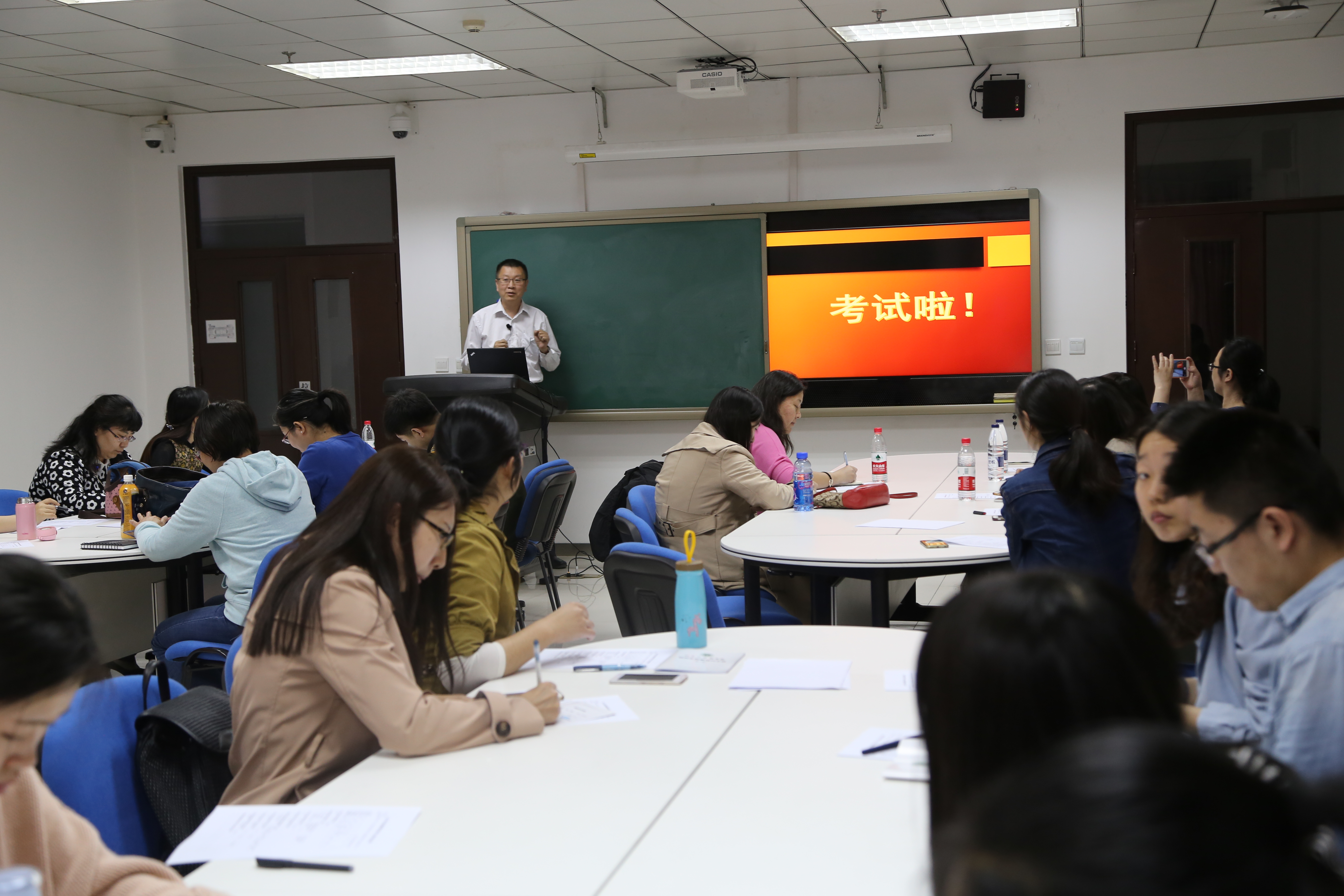 系统而丰富的介绍之后,现场老师们分成4组,尝试将8道传统型A1选择题改为情景逻辑思维式考题。经过近40分钟的实战,各组将其绞尽脑汁出的试题成果向大家展示,许多试题让人拍案叫绝。宋老师对其进行点评之后,还展示了他更改后的试题供老师们参考。