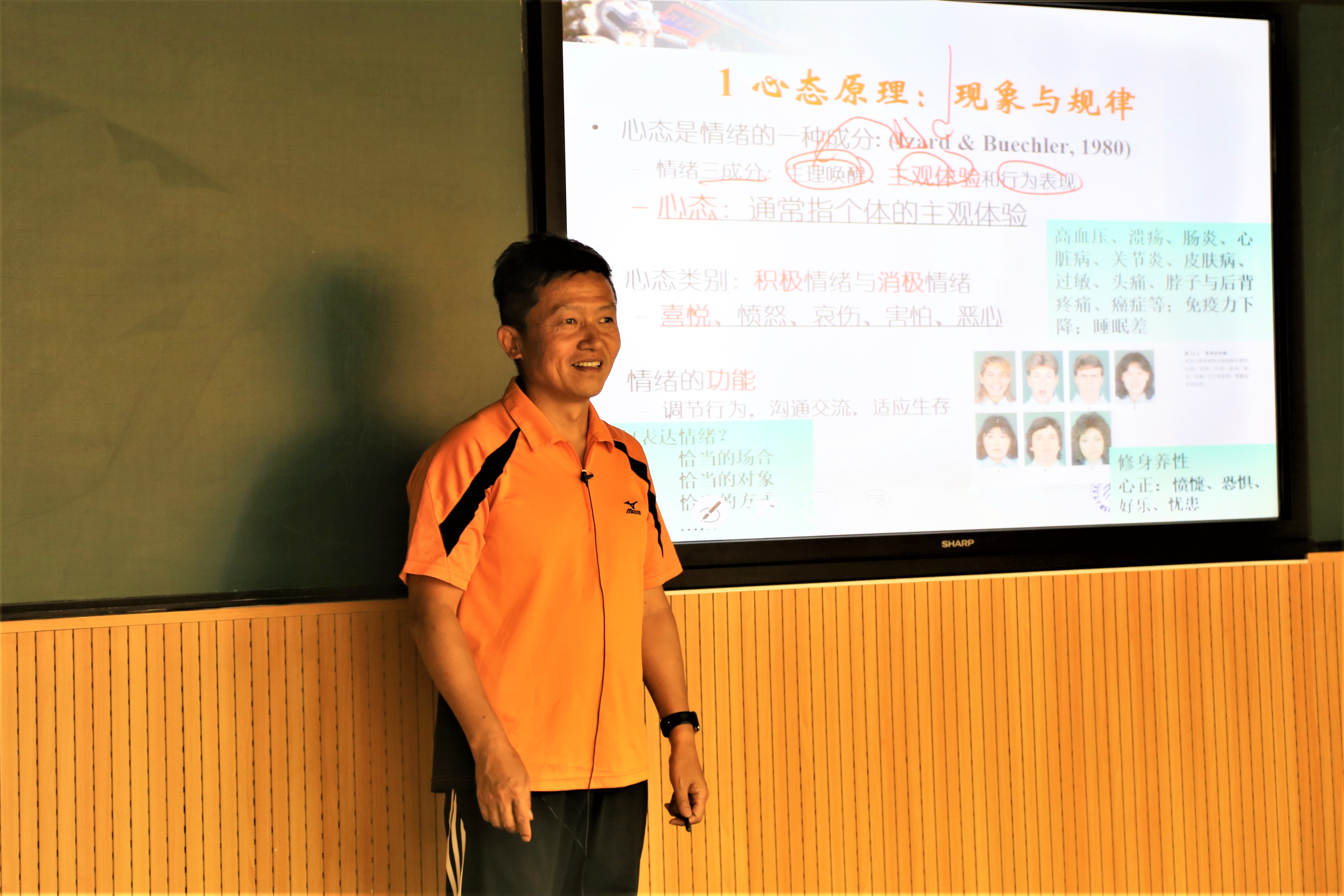 张老师首先对心态原理进行了讲解。心态是情绪的一种成分,情绪包括三种成分:生理唤醒、主观体验和行为表现,心态通常指个体的主观体验,会受到生理状况与行为的影响。无论是积极情绪还是消极情绪,都具有调节行为、沟通交流与适应生存的功能;正常人应该在恰当的场合、面向恰当的对象、采用恰当的方式表达自己的情绪;压抑情绪将会引起心理、生理机能的不适反应。