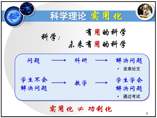 伊老师认为,科学可分为现在有用的科学和在未来有用的科学两大类;科学研究的本质是用科学的方法解决现实中的问题,发表论文只是科学研究的副产品;教学与科研类似,教师通过教学让学生学会解决问题的方式,通过考试来验证学生是否掌握了解决问题的方法,但教学的核心不是考试,而是帮助学生获取解决问题的能力。