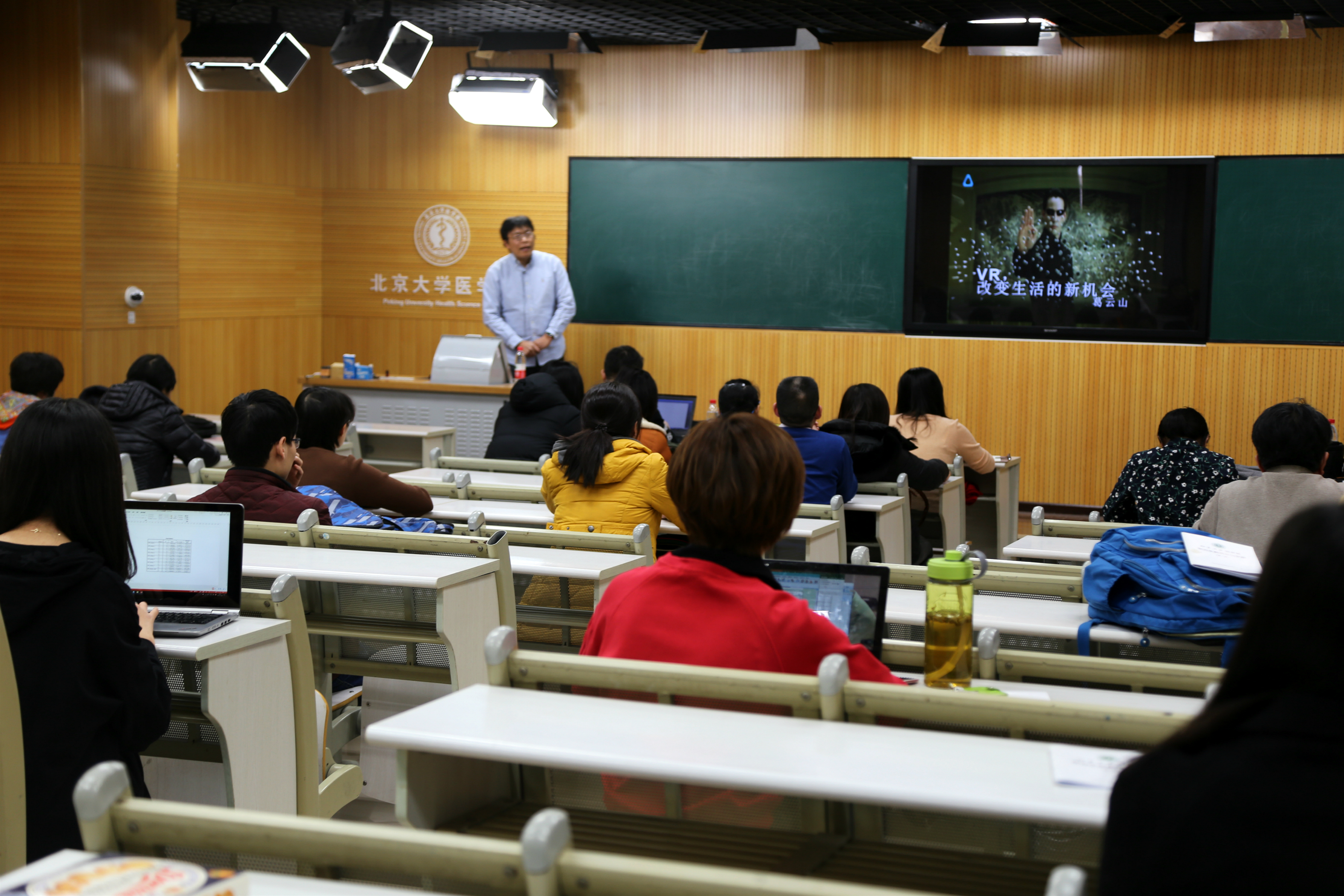 2017年11月28日下午,逸夫楼507教室,前HTC VR应用商店Viveport总监葛云山先生带来精彩讲座——《VR 改变未来生活的新机会》,50余位来自医学部各学院、各临床医院的青年教师及研究生助教参加了本次讲座,并体验了曼恒数字科技有限公司带来的VR手术计划训练系统(Surgical Theater,eSRP)。